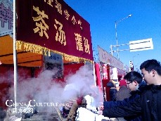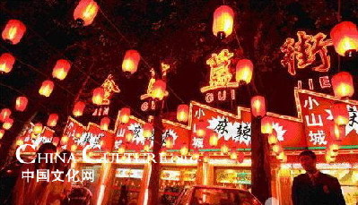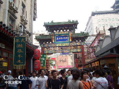 Here you can enjoy many delicacies while strolling leisurely. All snacks of China gather here. Snacks of authentic Beijing style come from no others but Baikui Laohao where offers authentic soymilk, fried dough, Luzhu and diversified barbecues. It's a very typical Muslim restaurant getting more blossoming when the night curtain falls. The 100m-long snack stall form a hot scene. Stall-keepers hawk one after anther. Just buy some sausage or fried squid costing from 2 to 5 Yuan.