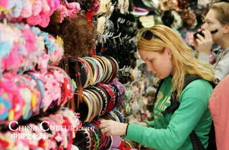 "I bought chopsticks, slippers made of silk, and some handicrafts," she said, carrying several bags in hand. "I haven't looked at the clothes yet."