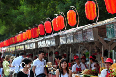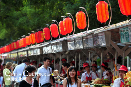 Photo taken on July 29, 2008 shows the bustling Wangfujing snack street in Beijing.