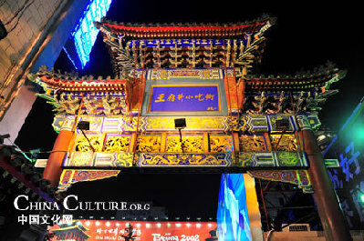 Photo taken on July 26, 2008 shows the archway in Wangfujing snack street in Beijing.