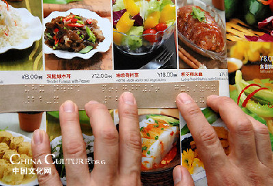 Photo taken on Sept. 2, 2008 shows a Braille menu at a restaurant in Beijing, capital of China. Many service sectors such as restaurants and shopping malls have established obstacle-free facilities as the Beijing 2008 Paralympic Games approaches.