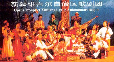 The Xinjiang Song and Dance Ensemble was established in 1949, consisting of artists from nationalities such as the Uygur, Han, Khazak, Hui, Mongol, Kirgiz, Uzbek, Xibe, Manchu, Tajik, Russian.