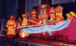 The music troupe of Labrang Temple is actually a palace troupe. The major task of the troupe is to play music for important religious activities or to accompany the Tibetan Opera during important occasions. The troupe has become a "living fossil" of Tibetan music and is of very high value to researching Chinese Buddhist music. Its members are mainly young lamas. Besides its performances in major cultural and tourist activities in China, the troupe has also successfully staged performances in France, the United Kingdom and Belgium.