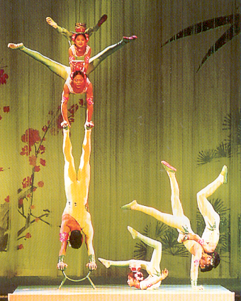 The Nanjing Municipal Acrobatic Troupe was established in Dec.1957. Since its establishment, the Troupe has provided many acrobatic evening shows. All its performances were difficult, thrilling, unique, beautiful and with South China characteristics. "Cycling on the High Wire with Bowl Topping", "Bicycle Balancing on a Three-story Stand, "Plate Spinning and Flower Picking with Mouth, and many other performances are the creation of the Nanjing Acrobatic Troupe."Hand Acrobatics", "Vocal Mimicry", "Magic Show", "Flying Spear", "Flying Man with Long Poles and "Brick Breaking on Chairs are winners of several awards. "Hand Acrobatics and "Bowl Balancing Act" won the Gold Prizes of France Paris Tomorrow Acrobatic Festival -the France Republic President Award in 1986 and 1989 respectively. "Plate Spinning seized the Silver Lion Award of the 3rd National Acrobatic Competition in 1993 and Gold Prize of the 4th Wuqiao International Acrobatic Festival in 1994. In 1997, "Plate Spinning and "Bamboo Diabolo participated in the 3rd Sweden Princess Cup International Acrobatic Competition, and both won the Silver Prize. "Leather Rope Trick and "Bowl Balancing won the Gold Prizes in the first National Seedling Cup Acrobatic Competition and first Literature Art Award of the People's Government of Jiangsu Province.
