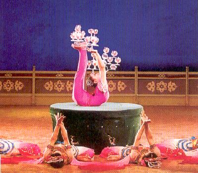 The Acrobatic Troupe of Gansu Province was founded in May 1960. Since its founding, the Troupe has created and staged over 100 excellent programs. Among them are Exotic Flowers of China, Art Presented in Palace, Flying Goddess, Rolling Lamps, Juggling Hoops, Pangu Drum and Balancing Jars on Head. Its Rolling Lamps won the silver clown award at the international acrobatic contest in Poland in 1996. Eight of its programs including Exotic Flowers of China and Pangu Drum own prizes at various national contests.