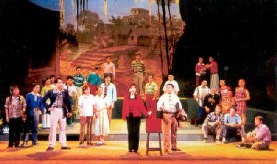 The Guangzhou Yueju Opera Troupe, formerly known as the Guangzhou Youth Catonese Opera Troupe, was founded in 1983 with Hong Xiannv, the well-known Cantonese Opera artists as its first chief art director. Since its founding, the Troupe has staged a number of plays of various style include White Snake, Daughter of the Heaven (adapted from Shakespeare's Merchant of Venice), Fragrance of Daughters, Wu Qi and the Princess and Wedding Night by the Taihu Lake. The troupe staged the opera King Rui and Imperial Concubine Zhuangfei which was awarded 9 grand prizes at the Guangdong International Art Festival in 1995. In the autumn of 1997, it put on a modern Cantonese opera Love of the Land and won 6 prizes of the Cao Yu Drama Award for the best play, performance, principal and supporting actors and vocal music.