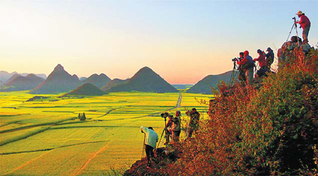 Photographers flock to Luoping every spring to capture the picture-perfect scenery. Li Wenjing / for China Daily |