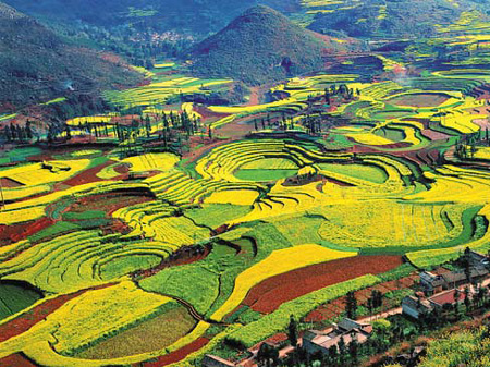 Located on the borders of Yunnan, Guangxi and Guizhou provinces, Luoping has long lured tourists with its unique karst landscapes. The basins dimpling mountain ranges are inhabited by the Yi and Bouyei ethnic groups. But its biggest draw is its 430,000 hectares of rapeseed, said to comprise Southwest China's largest plantation.