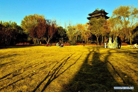 Citizens visit the Daming Lake, a scenic spot in Jinan, capital of east China's Shandong Province, Nov. 14, 2012. (Xinhua/Guo Xulei)