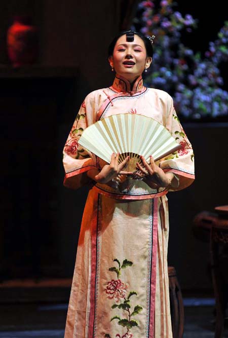 Leading actress Cheng Lisha preforms during the rehearsal of the drama Return on a Snowy Night at National Center for the Performing Arts in Beijing, capital of China, Dec. 14, 2012. Return on a Snowy Night, a drama created by Chinese dramatist Wu Zuguang in the 1940s, tells a miserable story that Wei Liangsheng, a well-known Peking Opera performer, and Yuan Yuchun, a high-ranking official's concubine, fell in love with each other, then were split apart for 20 years and eventually became "butterfly lovers." |