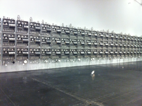 The works vary greatly in size, style and medium, exploring different aspects of modern India. One sculptural piece by Subodh Gupta is comprised of stainless steel kitchen utensils mounted on a wall in an ordered, almost mechanical setup. According to the program, “His work is a commentary on the threat to traditional ways of life resulting from India’s rapid modernization and urbanization”.