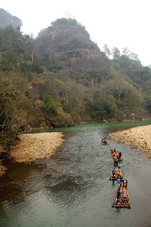 The Wuyi Mountains are a mountain range located at the prefecture Nanping, at the northern border of Fujian province with Jiangxi province, China. The mountains cover an area of 60 km2. In 1999, Mount Wuyi entered UNESCO's list of World Heritage Sites, both natural and cultural. It is the most outstanding biodiversity conservation zone of Southeast China. Numerous types of tea are produced around Mount Wuyi; it is the origin of the real Da Hong Pao tea and Lapsang souchong, further described in Wuyi tea.