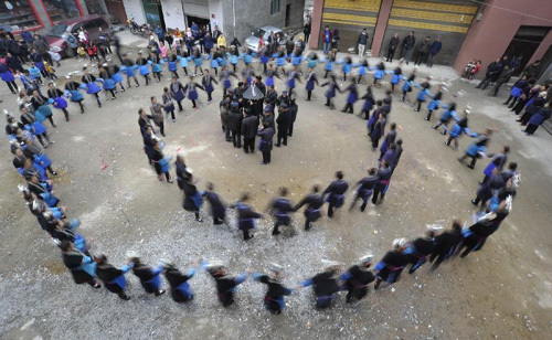People of the Dong ethnic group take part in an ancestor-worshipping ritual during the Sama Festival in Rongjiang County, southwest China's Guizhou Province, Dec. 19, 2012. As a part of the ongoing celebration of the Sama Festival, an ancient traditional festival commemorating the woman ancestor, a ritual was held on Wednesday to worship a heroine ancestor of the group named Sama. The festival will last untill Dec. 20.