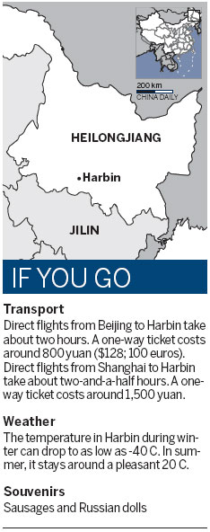 The sculptures are inspired by various cultures including those of Japan and Russia, which borders Heilongjiang province.