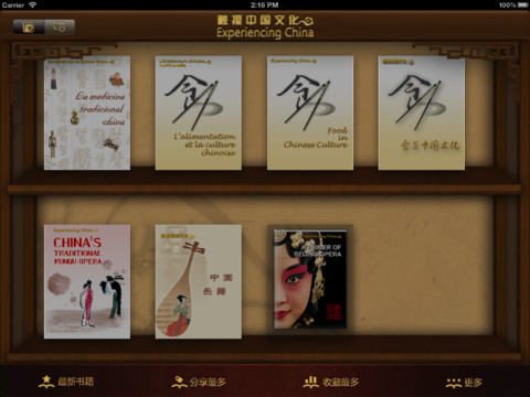 Experiencing China Collector is a reading software in multi-languages. It can provide you with E-book covering a series of Chinese Culture in simple and refining words for easy understanding, and its content contains every aspects of Chinese traditional culture.