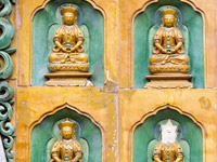The Giant Buddha Temple in Zhangye city, about 600 kilometers west of Gansu's provincial capital Lanzhou, is named after a statue worshipped inside. As many as eight people can stand on the ear of the 34.5-meter-long reclining Buddha. [Photo by Chen Xi/For China Daily]