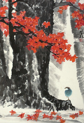Bird and Red Leaves by Fang Chuxiong                          Red Leaves and Eagle by Wan Yi