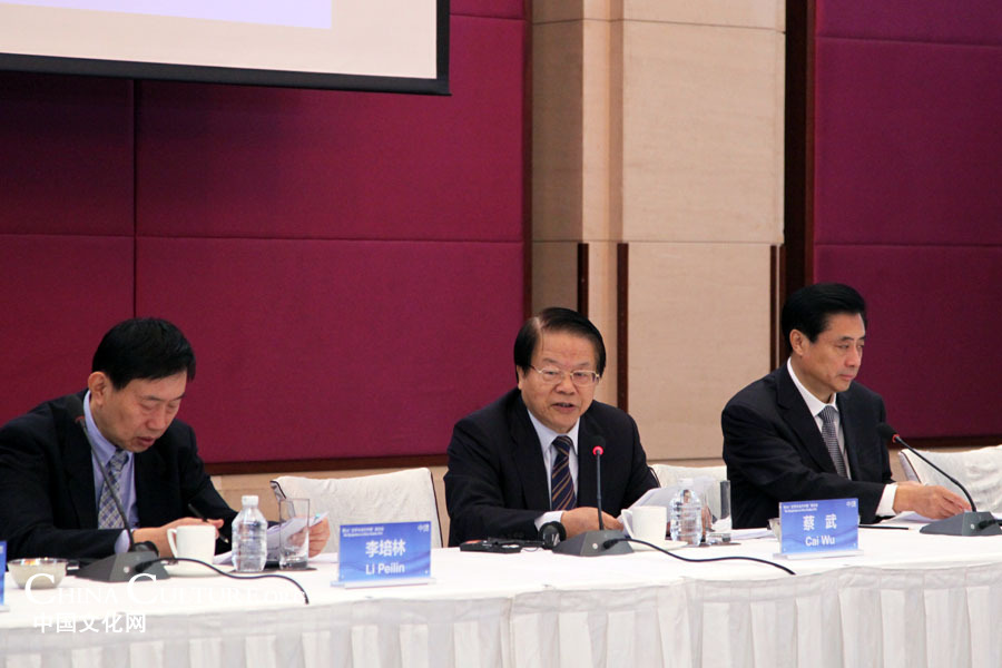 Cai Wu, Chinese Minister of Culture, gives the opening speech. [Photo by Liu Fang/Chinaculture.org] |