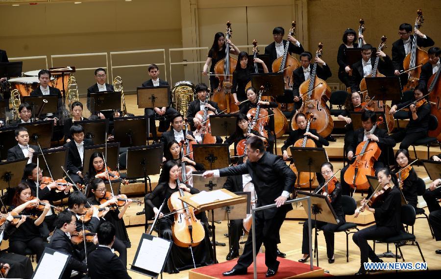 Artists from the China National Center for the Performing Arts (NCPA) Orchestra perform at Chicago Symphony Center in Chicago, the United States, on Nov. 2, 2014. The China NCPA Orchestra made the debut of its first-ever North America tour at Chicago Symphony Center on Sunday.[Photo/Xinhua]
