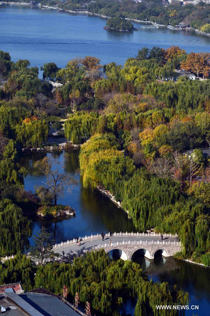 Photo taken on Nov. 13, 2014 shows the scenery of Daming Lake in Jinan, east China's Shandong province. [Xinhua/Guo Xulei]