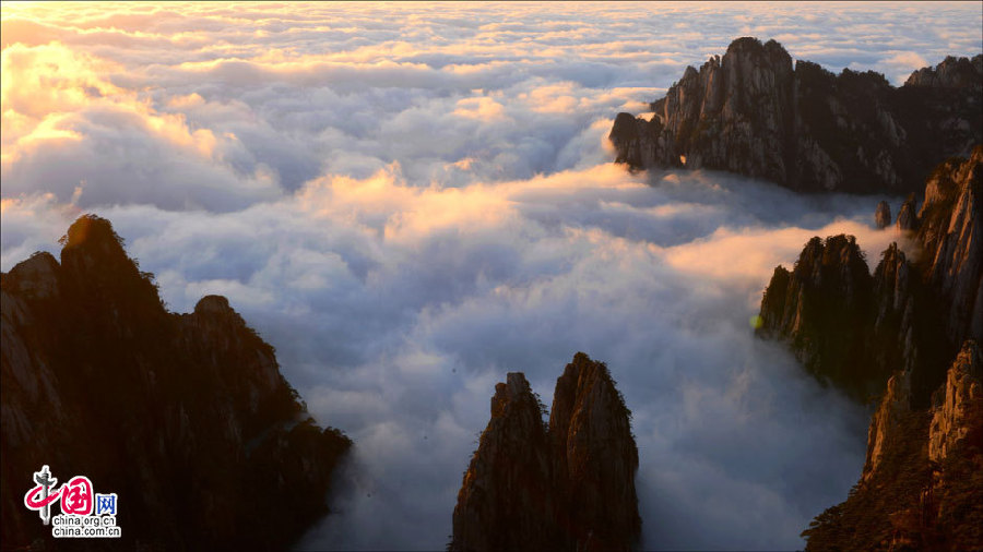 Mount Huangshan looks pretty in all seasons, but it is especially beautiful in winter, when numerous ravines, peaks, pines, pools and rocks are covered with ice or snow, and the mountain range becomes a silver fairyland. The glittering and translucent spectacle in the sunshine resembles a crystal palace. [China.org.cn]