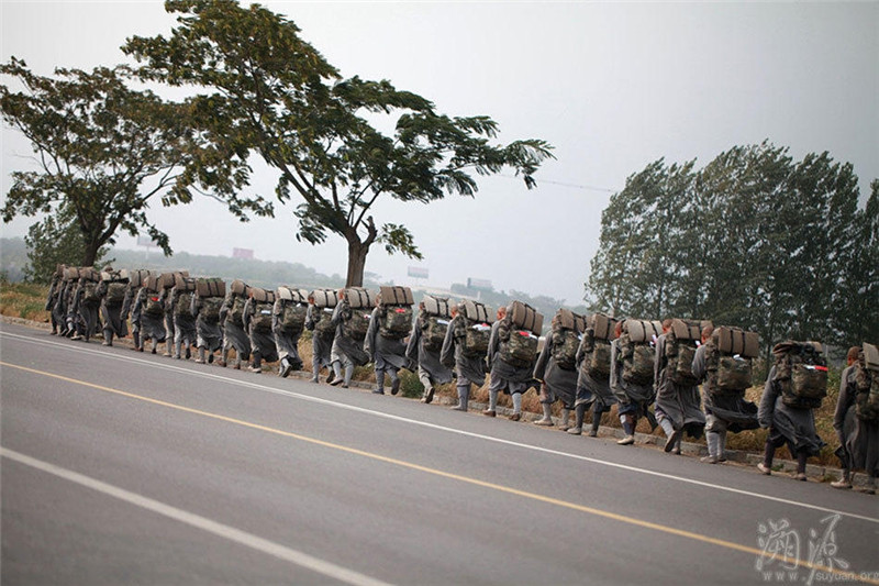 A gale sweeps over the nuns as they travel by foot. [Photo/suyuan.org]