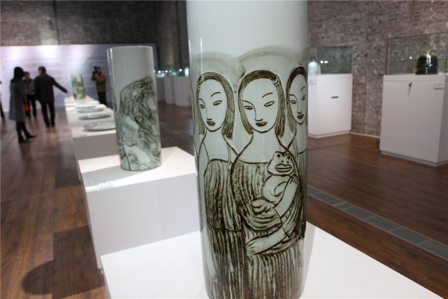 Ceramic art pieces are on display at the China Contemporary Ceramics Art Exhibition in Nantong, Jiangsu province, November 19, 2013. The exhibition, which will run through January 15, 2014, features 240 works of art from 56 well-known ceramic artists. Works created at different times by the same artist are shown together, displaying the development of each artist's style. [Photo/Xinhua]