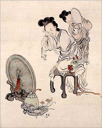 During this period, the depiction of women in art became formulaic, showing women regardless of social status with slim figures, oval faces and cherry lips.