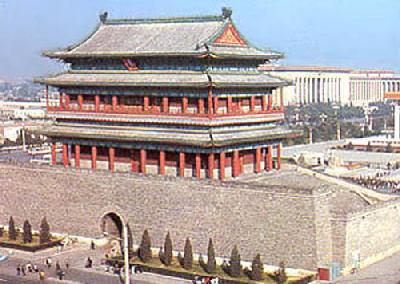 Jiao Lou(Corner Tower) on the four corners, which used to be stationed by the emperor's guardsmen, for instance, the existing Southeast Jiao Lou at Dongbianmen of the Chongwenmen (Chongwen Gate) District.