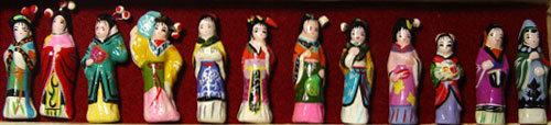 Chinese folk artists use simple and cheap materials to make small and delicate handicrafts, won great favor among folk people. In the Ming and Qing dynasties, painted clay figurines were very popular. The most famous were the Clay Figurine Zhang ( Niren Zhang) made inTianjinand the Huishan clay figurines made in Wuxi,Jiangsu Province.