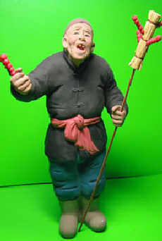 Clay Figurines Zhang was a kind of school of art in northern China. It was initiated by Zhang Mingshan in the lateQing Dynasty. Zhang Mingshan was born in a poor family in Tianjin. He learned from his father how to make clay figurines at a very young age. Zhang was clever, deft and full of imagination. He carefully observed people at different places, such as market fairs, theaters and so on. Then he would secretly make clay figurines of those he met and hide them inside his sleeves.