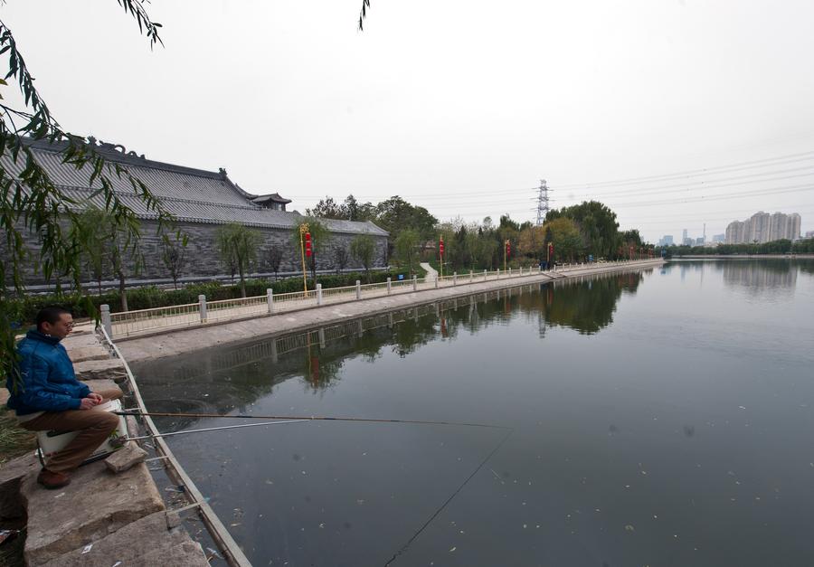 Photo taken on Nov 2, 2011 shows a man is fishing at the Gaobeidian section of Tonghui River in Beijing. China's Grand Canal, the longest artificial waterway in the world, was inscribed on the World Heritage list on June 22, 2014. [Photo/Xinhua]
