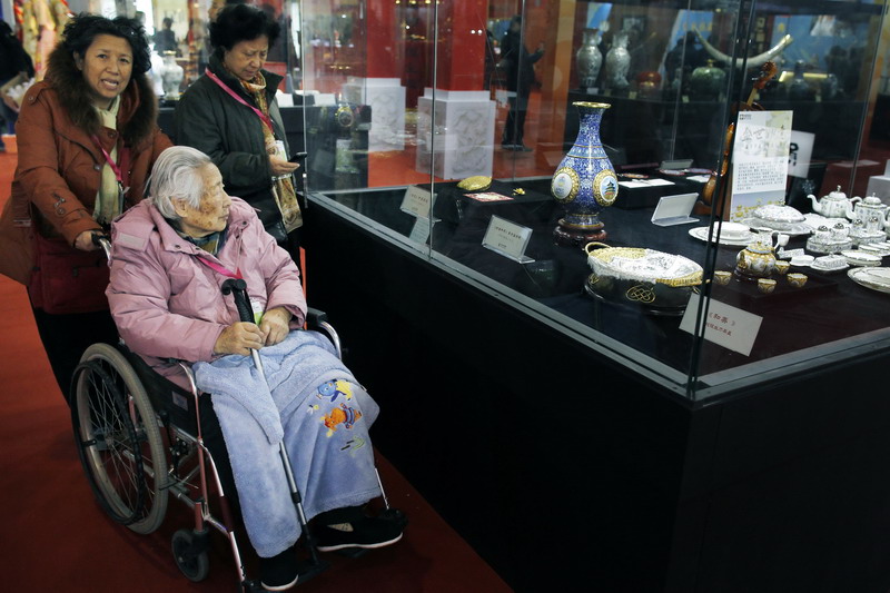 Visitors take in the articles used during the APEC summit at the 9th ICCIE in Beijing, Dec 11.[Photo by Zhu Xingxin/asianewsphoto.com]