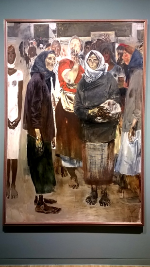 The oil painting Mothers and Sisters from the exhibition at the Dadu Museum of Art in Beijing. [Photo/people.com.cn]