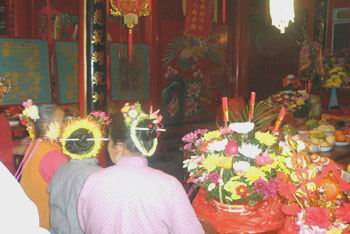 Every year, on the 23rd day of the third lunar month, said to be the birthday of Mazu, fishermen go to the Mazu temple to worship the goddess instead of going fishing. In this picture, women over the age of 60 worship their goddess, Mazu.