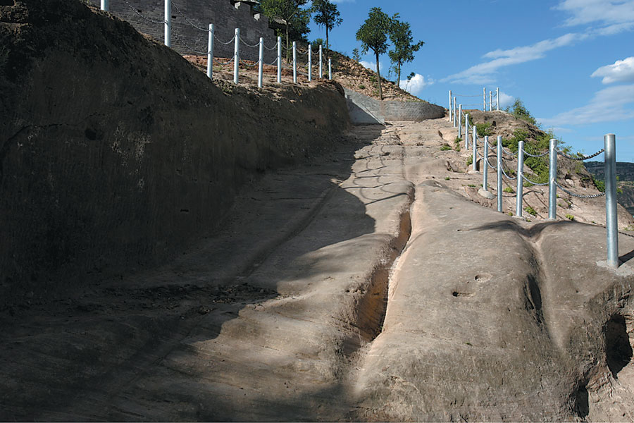 A road in Changwu in Shaanxi province was deeply rutted by carts on the Silk Road. [Photo provided to China Daily]