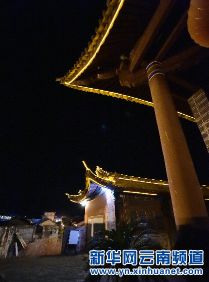The night view of the Gongchen tower before it destroyed by fire on Jan 3, 2015. [Photo/ yn.xinhuanet.com]