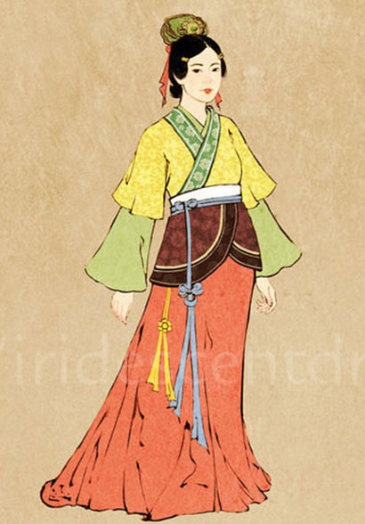 Dresses in the Yuan Dynasty were similar to those in the Song Dynasty. Tops were kept small with double draping sleeves. Skirts were often pleated and hairstyles adorned with ornaments. Half sleeved jackets, inspired from the ethnic clothes of Mongolia, were also popular.