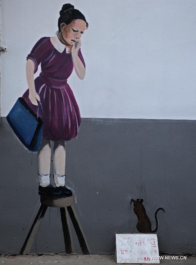 A cartoon mural is seen in a residential community of Changsha, capital of Central China's Hunan province, Jan 15, 2015. [Photo/Xinhua]