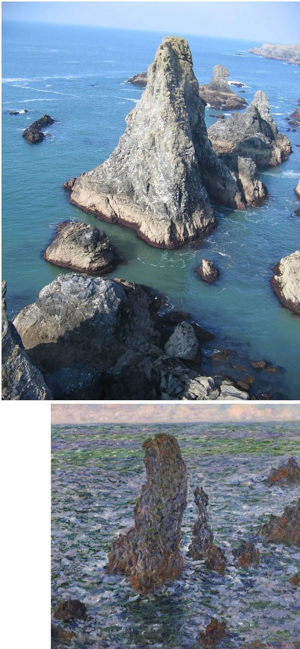 Below: The Pyramids at Port-Coton (in France), by Claude Monet, 1886. [Photo/Contemporary Oil Painting]