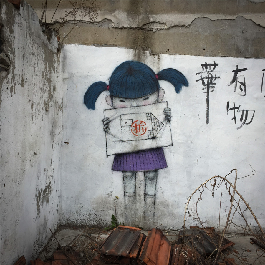 Graffiti appears on dismantled Shikumen buildings in Shanghai