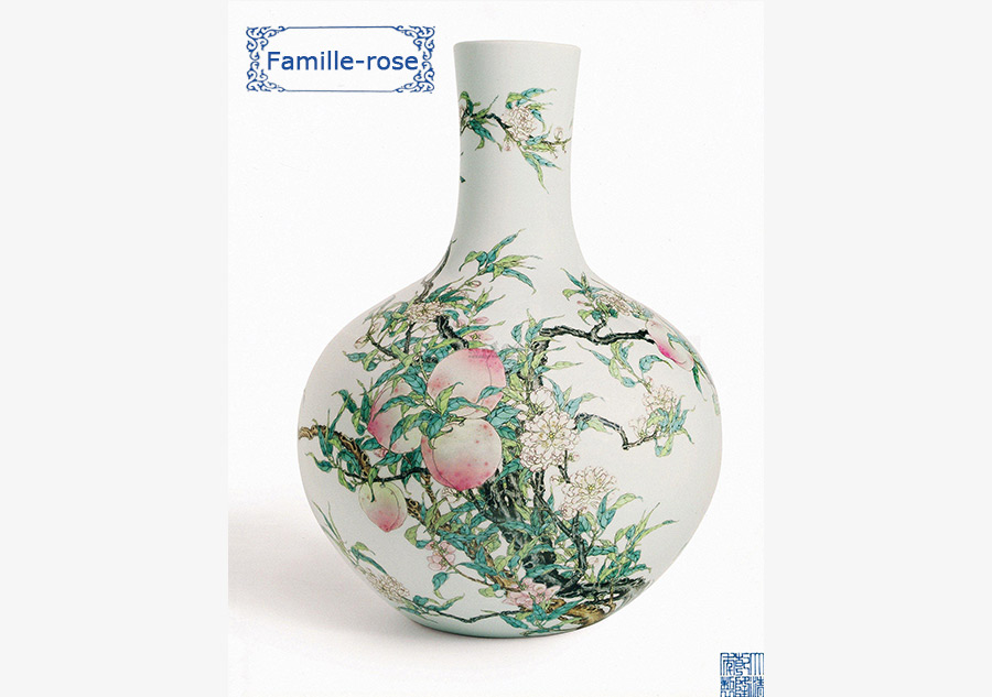 Famille-rose porcelain first came into being during the Qing Dynasty (1644-1911). The main materials and techniques used to make the porcelain were introduced from abroad in the beginning. When making famille-rose porcelain, craftsmen fired opaque glass, which is a an opaque white enamel containing arsenic, onto plain porcelain, creating patterns with Chinese painting techniques and then baking it in a kiln.