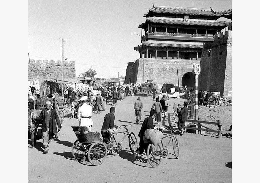 The busy area in Qianmen, Beijing is seen in October 1951. [Photo/ Agencies]