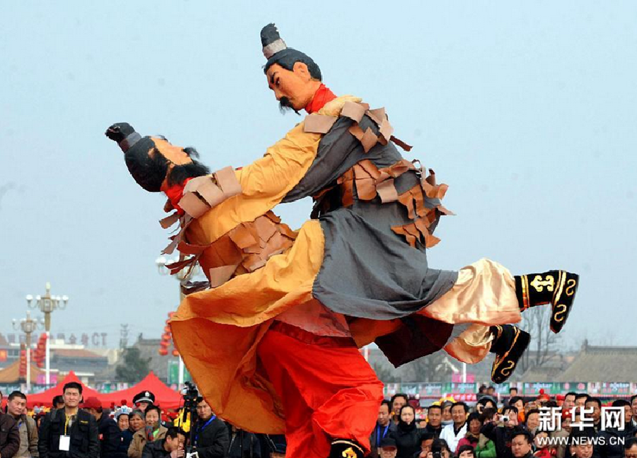 A scene from Yangko drama "Two Ghosts Wrestling" in Huaiyang county, Henan province.[Photo/Xinhua]