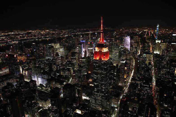 The Empire State Building hosts a light show on Feb 17, 2015, as a part of Chinese New Year celebrations. [Photo/art.china.cn] |