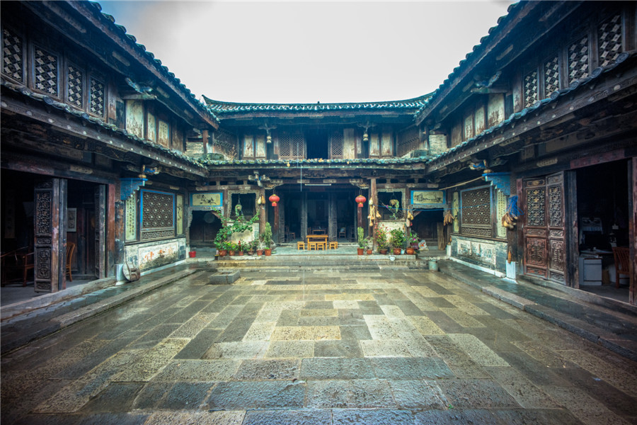 A national-level protected cultural relic named "Huang'en Mansion", built in 1909. Most structures in Tuanshan are two-storey compounds with houses surrounding courtyards facing east, featuring black tile roofs, pointed eaves and whitewashed outer walls. [Photo by Jiamu Wan/For China Daily.com.cn]