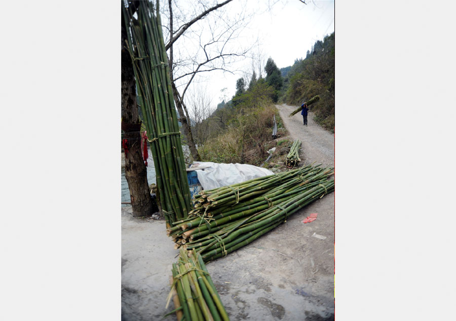 Bamboo is the raw material used in papermaking. [Photo by Rao Guojun/Asianewsphoto]