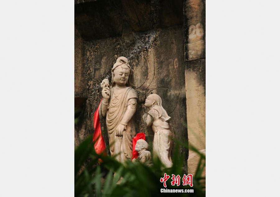 The Cliffside Statues of Nankan, located one kilometer south of Bazhong county, Southwest China's Sichuan province, include over 2,100 statues in 133 niches, most of which were carved during the Tang Dynasty (618-907). [Photo/Chinanews.com]