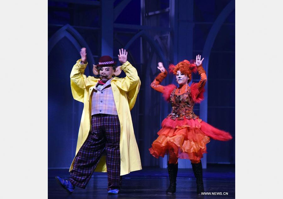 Actors perform during a rehearsal of the musical drama "Checkmate" in Taipei, Southeast China's Taiwan, April 24, 2015. The musical drama performed by the "If Kids Theater" will be on stage from April 24 to 26. [Photo/Xinhua]