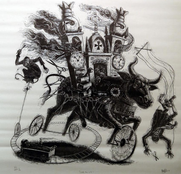 An art piece is shown in the exhibition. [Photo/qianlong.com] |